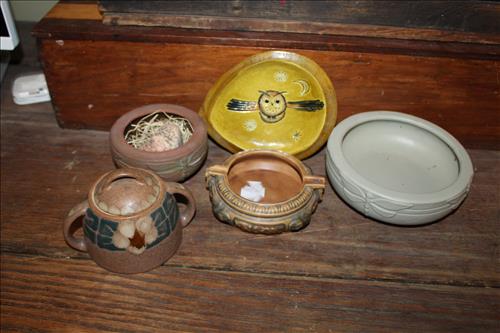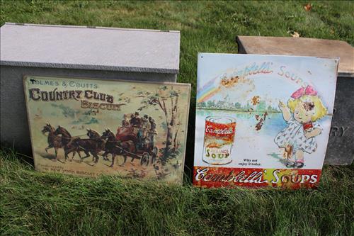 Collectibles & Curiosities:Swing Dairy Butter Churn, Porcelain Signs: Large Texas Paper Co & Pittsburgh Outdoors Adventure Co; Erie RR Metal Conductor Step Stool, Assortment of Portmeirion Dishes, Anthropomorphic Cookie Jar, Large White/Green Ceramic Illuminated Tree, Large Pottery Fish, Pottery: Rookwood - Ginger Jar, Fan, Squat, Bud & Footed Vases; Mulberry & Blue Van Briggle Vases, Shawnee 2 Handled Vase, McCoy Large & Small Vases, Rumrill & Brushed McCoy, Plus Many Stellar Vintage Pottery Pieces; Military: WWI Maps, Gas Mask, Shovel, Gloves, Hats, Test Missile, Yard Longs, WWII Navy Boat Spotlight Tripod, Ephemera, Badges, Books, Trench Art Bullets, Gas Cans & Camo Bullet Proof Vest; Masonic, Odd Fellows & Fraternal Items; Flag on Stand, Aircraft Directional Gyro Indicator, Cast Iron Horse Hitching Posts, Advertising: EH Zook Coal, Flower & Feed Bag Holder, West Middlesex, PA., Metal Pittsburgh Press Mailbox & Framed Glass Sign From Factory, Cannon Muskegon Barrel, 4 Shelf Vintage Metal Coke Display Unit, Kendall Motor Oil Barrel, Herman Joseph Mirrors, Surpee Ramsey Wood Shoe Box, Mayer Dairy Farm & Carl Colteryan Milk Boxes, P S & W Co. Brass Hanging Scale & 8 Drawer Metal Mechanic Display Dorman Products; Metal Signs: Ford, Land Rover, Cadillac, Thunderbird, Ring Bell for Service, Sunbeam Bakers & NY66; Wagner Electric Floor Fan, Iron Chandeliers, Arctic Galvanized Drink Cooler, Metal Planters & Plant Stands, Brass Buddha & Fireplace Screen, Metal & Wood Pulleys, Boy/Cub Scouts Pins, Patches, Badges & Hats, Aqua Glass Jug, Copper Kettles on Stands, Small Cast Kettle w/ Lid, Harley Davidson: Leather Jackets, Chaps, Helmet, Seat Back & Floater Front Rotor; Early Toys: Playskool 1970 Holiday Inn, Doll House Furniture, Tupperware Children's Kitchen Sets, Musical Push Chime, Barbie Doll Cases w/ Contents, Early Games - Fiddlesticks, Grab a Loop, Rebound, Ideal Double Sink Wash Basin, Blow Molds: Pumpkin, Kitty & Pumpkin & Ghoul Skeleton, Linens, Tablecloths, Quilts & More;