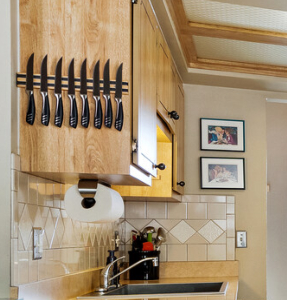 Steak knives, silverware, utensils, and holder