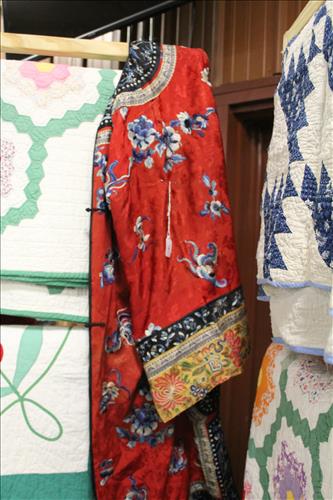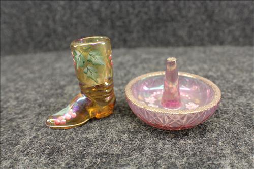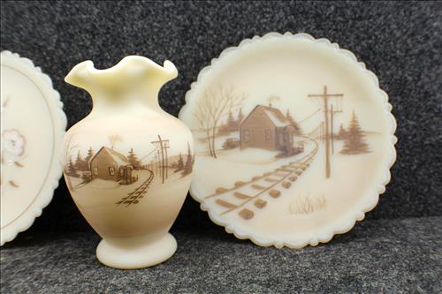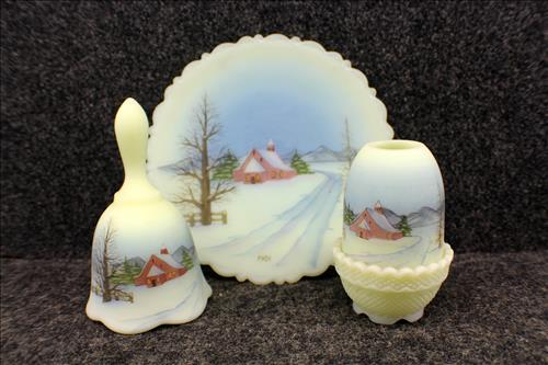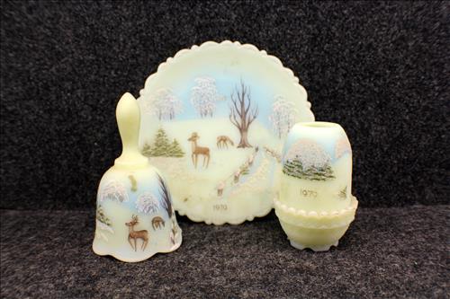 Antiques & Collectibles:Stunning Hand Carved Wood Animal/Hunting Motif German Cuckoo Clock, Beautiful Condition - 5 Hudson Bay Wool Blankets, 2 Hudson Bay Ladies Full Length Coats, Mantle Clocks: Seth Thomas Sonora Chime, Telechron Cathedral, Ingram & New Haven; Molded Illuminated Santa, Wheelbarrel w/ Wood/Metal Wheel, RCA Victor Floor Model Radio, Many Quilts - Some Over 100 Years Old, Silk Kimono, Fenton Collection:Vases, Compotes, Plates, Candy Dishes, Bells, Candle Holders, Pitcher, Compotes, Toothpick Holder, Perfume Bottles, 95th Anniversary Small Jar w/ Lid, Eggs, Picture Frames, Christmas Ornaments, Purple Fan Dish & Ring Holder, Ashtray, Heart Shaped Covered Butterfly Dish, Boots, Shoes, Butterfly Hobnail Covered Jar & Many Custard Pieces; Fenton Lamps: Cranberry, Custard & Hand Painted; FentonBurmese: Basket, Covered Dish & Drinking Glasses;FentonMatching Sets of: Fairy Lamps, Bells & Plates;Crocks: #5, #5 w/ Lid & Hamilton & Jones #2 Greens...