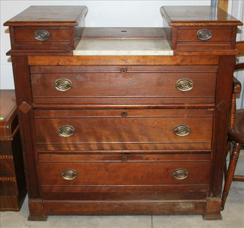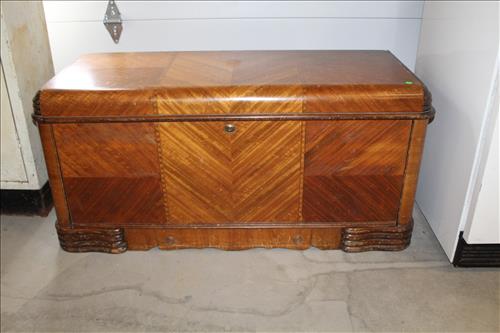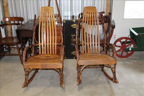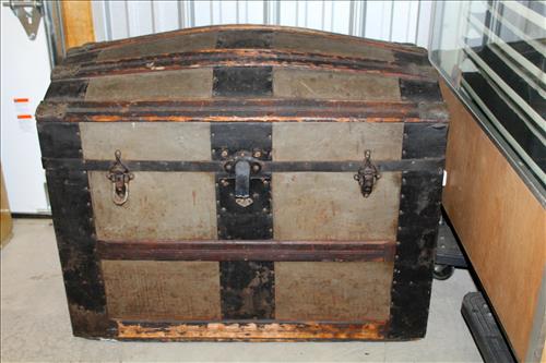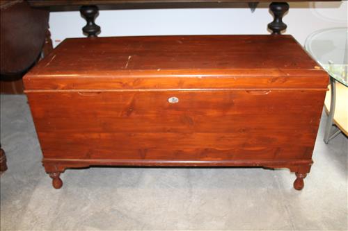 Furniture:Handmade Grand Daughter Clock, Hand Carved Wood Chairs, Pair of Amish Rockers, 6 1/2 ' Early Mid 1800's Deacon Bench in Paint, Hump Top Trunk, 4 Cedar Chests, Steamer Trunk, Plant Stand, 3 Drawer Side Stand, Gate Leg Table w/ Drawer, Marble Top Dresser w/ Glove Boxes, Office Chair, Child's Desk & Chairs, Pub Table, Oak Organizer Stand, Kitchen Table w/ 4 Wheeled Chairs, 5 Drawer Dresser, Platform Rocker, Mirrored Corner Shelf, Vanity w/ Mirror, Brass Lamps, Marble Top Side Stand, 3 on 4 Highboy Dresser, Oak Rocker, Jewelry Armoire, Doll Cradles, Glass Top Oval Coffee Table, Blanket Box, Wicker Side Stand, Drop Leaf Table On Wheels, Metal Glider & More.