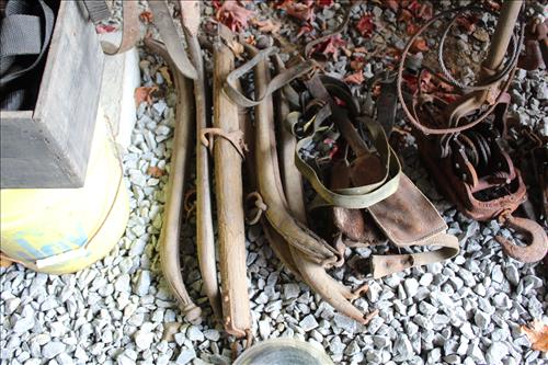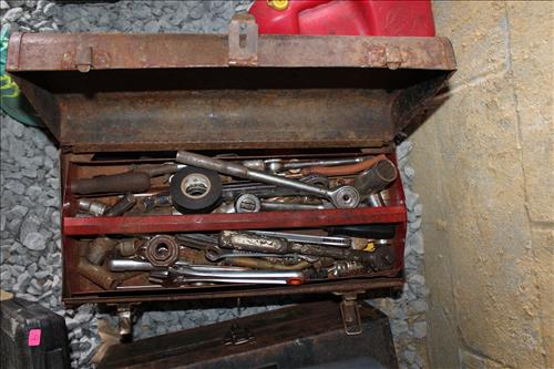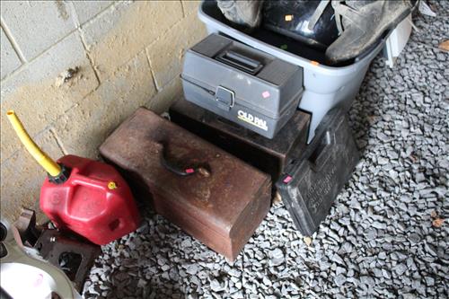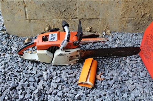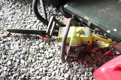 Tools:Stihl, Craftsman & PoulonChainsaws, Craftsman: Weed Eater, Pull Behind Seeder, Miter Saw & Belt Sander on Stand; Early Generator, Jack Stands, Wedges, Hammers, Long Chain w/ Hook, Hardware, Bow Saws, Come Along, Chain Binders, Gas Cans, 5.5 Shop Vac, Hammers, Bungees/Straps, Echo Weed Eater, Coleman Camp Stove, Early Wood Boxes, Scott Seeder & More.