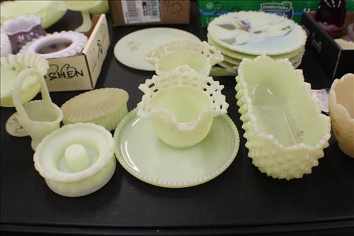 Antiques & Collectibles:Stunning Hand Carved Wood Animal/Hunting Motif German Cuckoo Clock, Beautiful Condition - 5 Hudson Bay Wool Blankets, 2 Hudson Bay Ladies Full Length Coats, Mantle Clocks: Seth Thomas Sonora Chime, Telechron Cathedral, Ingram & New Haven; Molded Illuminated Santa, Wheelbarrel w/ Wood/Metal Wheel, RCA Victor Floor Model Radio, Many Quilts - Some Over 100 Years Old, Silk Kimono, Fenton Collection:Vases, Compotes, Plates, Candy Dishes, Bells, Candle Holders, Pitcher, Compotes, Toothpick Holder, Perfume Bottles, 95th Anniversary Small Jar w/ Lid, Eggs, Picture Frames, Christmas Ornaments, Purple Fan Dish & Ring Holder, Ashtray, Heart Shaped Covered Butterfly Dish, Boots, Shoes, Butterfly Hobnail Covered Jar & Many Custard Pieces; Fenton Lamps: Cranberry, Custard & Hand Painted; FentonBurmese: Basket, Covered Dish & Drinking Glasses;FentonMatching Sets of: Fairy Lamps, Bells & Plates;Crocks: #5, #5 w/ Lid & Hamilton & Jones #2 Greensboro PA; Franciscan Ware Desert Rose - Nesting Bowls, Gravy Boat, Plates & More; Cast: Dachshund, Spaniel, Coon Dog Car & Parrot Opener;1987 Sealed Jim Beam Car Decanters, Goebel: Figurines, Dealer Plaques, Bells, Plaques & Friar Tuck Collection; Large Andri Wood Figurines w/ Boxes, Many Collector's Plates: Copenhagen, Old Master's Collection, Kaiser, Wedgewood, Norman Rockwell & Many More; Noritake Easter Eggs, Mustang Hood Ornament, Cast Pointer Setter, Hand Carved Wood: Early Car, Delivery Truck & Tractor; Ertl John Deere Tractor & Wagon, United Cowboy TV Lamp, Philco Bakelite Radio, Salt/Pepper Collection, Many Early Dog Breed/Bird Figurines, Advertising Crates: Coca-Cola,1952 Olson Farms & Tom Thumb; Wendall August Forge Pieces, Silhouette Pictures, Coffee Mills, Harkarware "Cat Tails" Dishes, 1926 License Plates, Cookie Cutters, Banded Bowls, Marbles, Early Hearing Aide, Pocket Knives & Straight Razors, US Navy Sign, Small Gumball Machine, Green Depression, Ephemera, Harlem Globe Trotter's Autographed Basketballs, Precious Moments, Amber Hen on Nest, Early Cheese Boxes, Hand Painted Wood Ducks, Early Beaded Purses, "Jack in the Pulpit" Vase, "Invincible" Pan Scale, Hand Carved Wood Sand Pipers, NRA Tin Sign, Metal Lawn Chairs, State Game Commission & PA Forestry Tins, Native American Scraping Stone, Barlow & Ronson Lighters, Nixon Political Buttons, Rolling Pins, Coca - Cola Clock, Enamel Ware: Jug, Bowls, Plates & Bakeware; Pulleys, Belt Buckles,Plexiglass Trunk& More.