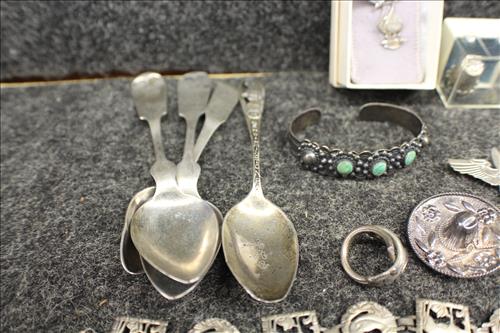 Sterling Silver, Gold, Coins & Jewelry:5 Morgan Silver Dollars: 1884 S,1890 - MS60, 1890 S -XF, 1889 - MS63 & 1889 - MS60; 10 Rolls of Wheat Pennies, 3 2017 American Silver Eagles & 2 - 1924 Peace Dollars, 14K .91 Carat Diamond Ring, 14K Rings,10K Rings & Pins, 18K Pin, 14 K Gold & Pearl Necklace, Sterling Silver: Spring Glory Service for 8 (50pc) International Sterling Flatware, 1913 Service for 12 Sterling Silver Flatware, Gorham Salt Spoons, Rings, Spoons, Bracelets, Thimble, Necklaces, Pins & Class Ring; Ladies/Men's Watches, Costume Jewelry Lots, Authentic Cherokee Indian Beaded Earrings & Necklace & More.