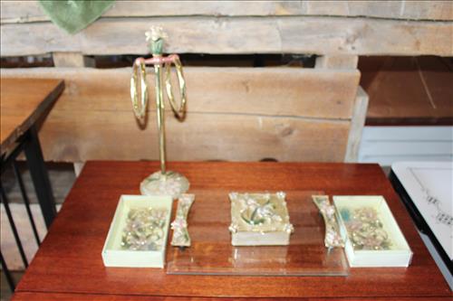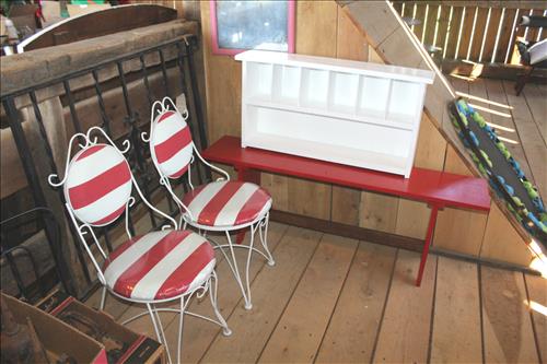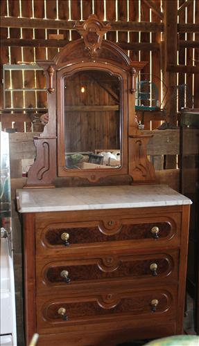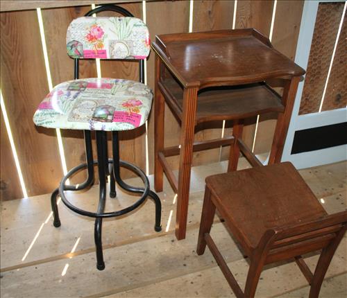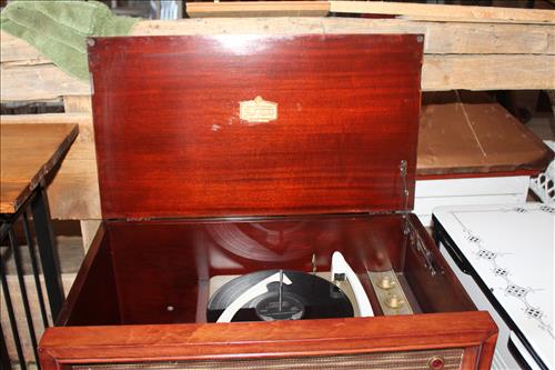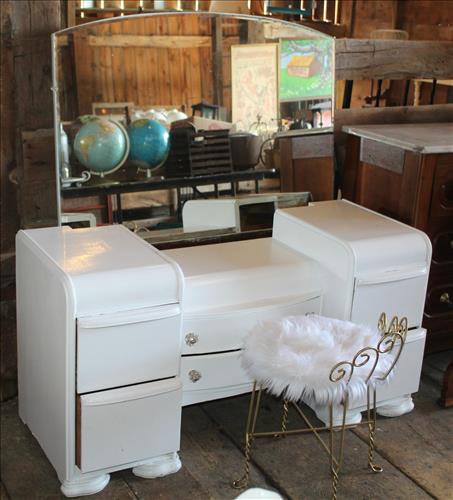 Furniture:Oak Library Book Case, Marble Top 3 Drawer Dresser, Empire Style Library Table,Ladies Desk w/ Slider & Pigeon Holes, Parlor Table, Large Oak Mirror w/ Hooks, Ice Cream Parlor Table w/ 4 Chairs, Painted Hoosier, Park Bench, Folding & Wood Chairs, White Wicker Coffee Table, White Vanity & Mirror, Bar Stools & Mirror, 2 Drawer Side Stands, White Table-Trestle Style, School Desks, Gray Parlor Table, Plant Stand, Maple Pull Out Kitchen Table, Buffet w/ Mirror & Backdrop, Small Bar Table, Enamel Top Tables w/ Leaves, Hump Back Trunk, RCA Victor High Fidelity Record Player, Small Mirror w/ Hooks, Cradle, Telephone Stand & Chair, Canned Back/Bottom Rocker, Side Stand, Hand Painted Stool, Red/White Parlor Chairs, Bench & Cubby, Black Parlor Chairs, Metal Base Rectangular Table, Decorative Display Stand, Pigeon Hole Wall Display & More.