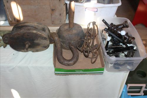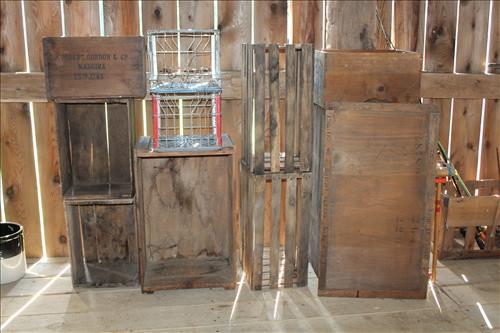 Items of Interest:2- 8Ft Cedar Wood Gutters, Industrial Dollie on Cast Wheels, Buggy Seat, Hand Carved Wood Bocci Balls, Chicken Crate Table, Chicken Nesting Box-Fresh Eggs.