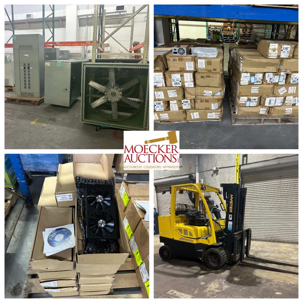Sale will consist of Hyster forklift Model: S120FT-PRS, Canon iR C5535i Copier, CanArm HVAC ADD Direct Drive Wall Fans, TITR Energo Panel Power Distribution Units, Siemens Panelboards, ReliaGear Next Panelboards, ReliaGear Next Ground Kits, Sapphire graphics cards, Jefferson Electric transformers, Monitors, Projectors, Printers, Bitmain Antminers, Antminer hashboards, Flex drill kits and lithium-ion batteries and more.