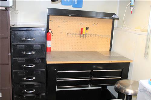 Tools & Equipment: New Poulan Pro 42CC 18" Chain Saw, Stihl BG 56C Gas Blower, Troy-Bilt 3,000 PSI Pressure Washer, 1.5 HP Poulan Electric Tree Trimmer, B & D Electric Hedge Trimmer, Toro Weed Eater, Troy-Bilt Gas Weed Eater, Homelite Blower, Large Aluminum Extension Ladder, Metal Gladiator Tool Cabinet, Craftsman Dry Vac, Royal Canes Tool Cabinet & Workbench, Stainless Steel Stool, 8 Drawer Industrial Cabinet, Appliance Dolly, Sprayer, Scott Seeder, Garden Tools, Ruger & Master Locks w/Keys & More