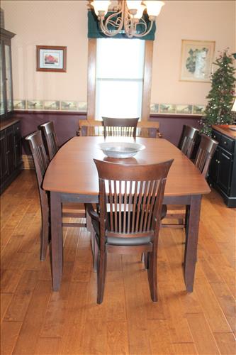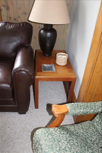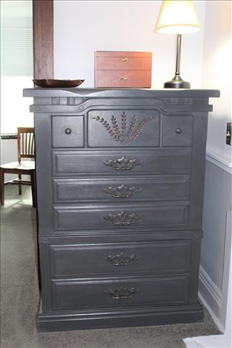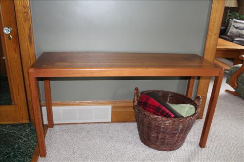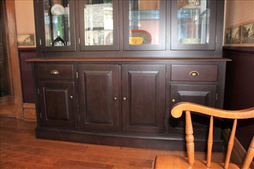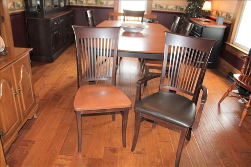 Furniture: Canadel Dining Room Table w/6 Chairs & 2 Leaves, Buffet & China Cupboard on Credenza; Smith Brothers Leather Couch & Love Seat; Upholstered Vintage Platform Rocker, Sofa Table, Small Tabletop Bookshelf, Singer Treadle Oak Cabinet, Leather Office Chair, Queen Size Bed Headboard, Virginia House 2 on 4 Dresser, 4 Piece Bedroom Suit: Queen Bed, Highboy Dresser, 8 Drawer Dresser & Side Stand; Eagle Motif & Slat Wood Park Benches, Double Adirondack Chair w/ Center Table, Oak Child's Desk & Chair, Wood Stool, 3 Drawer Chest, Wood Armed Captain's Chair, Small Divided Maple Cabinet, Corner Entertainment Cabinet, Side...