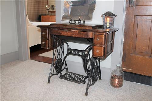 Furniture: Canadel Dining Room Table w/6 Chairs & 2 Leaves, Buffet & China Cupboard on Credenza; Smith Brothers Leather Couch & Love Seat; Upholstered Vintage Platform Rocker, Sofa Table, Small Tabletop Bookshelf, Singer Treadle Oak Cabinet, Leather Office Chair, Queen Size Bed Headboard, Virginia House 2 on 4 Dresser, 4 Piece Bedroom Suit: Queen Bed, Highboy Dresser, 8 Drawer Dresser & Side Stand; Eagle Motif & Slat Wood Park Benches, Double Adirondack Chair w/ Center Table, Oak Child's Desk & Chair, Wood Stool, 3 Drawer Chest, Wood Armed Captain's Chair, Small Divided Maple Cabinet, Corner Entertainment Cabinet, Side Stand, Folding Lawn Chairs, Umbrellas & Stands; 2 Zero Gravity Chairs, Lounge Chair & 2 on 3 Maple Dresser.