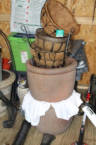 Household & Misc: Kero-Sun Portable Heater, Steel Shelving Unit, Plastic Shelving Unit, Pyrex Nesting Bowls w/Lids, Luggage, Sleeping Bags, 3-2 Drawer File Cabinets, Sterno Items, George Foreman Grill, Baskets, Card Tables, Flatware, Snack Sets, Cookie Platters, Salem Swirl Dish Set, Sony Cassette Radio, Pencil Christmas Trees, Ceramic Cutting Board, Floor,SS, Moose & Bear Lamps; Welcome Sign, Oak Framed Pictures, Wired Window Planters, Metal Hose Holder, Sheppard Hooks, Cooper Sprinkler, Bird Feeders, Homemade Fountain, Garden Fencing, Concrete Planters, Garden Owl, Galvanized Tub & A Lot More......