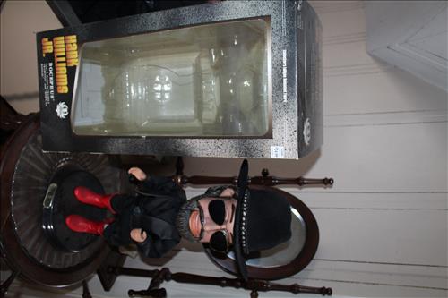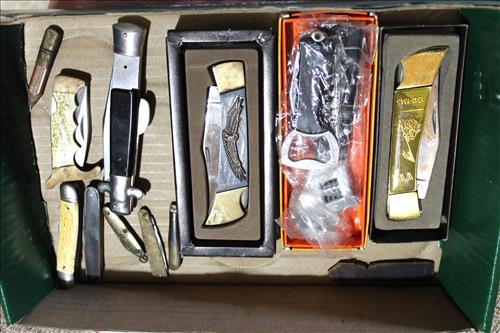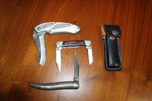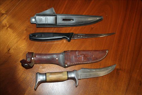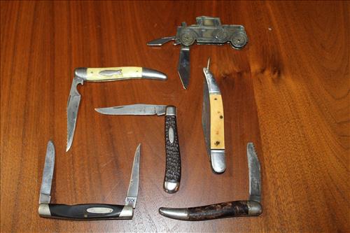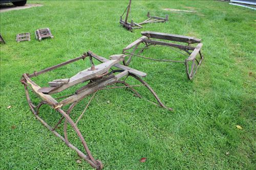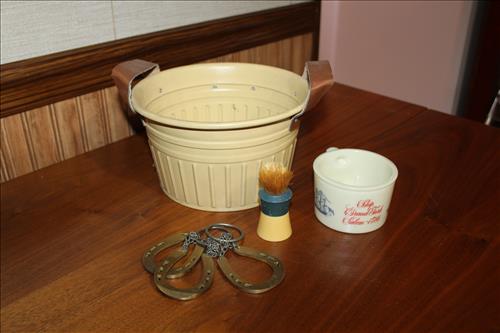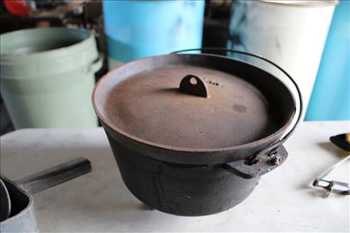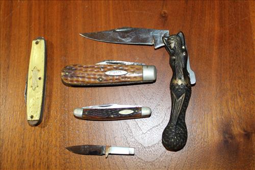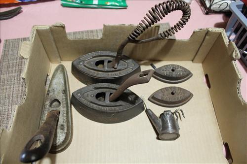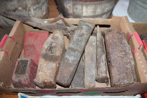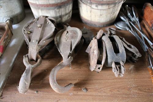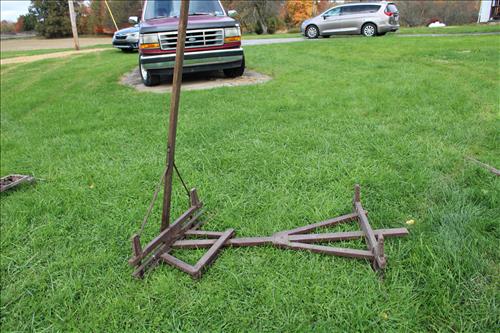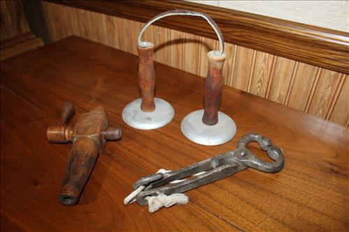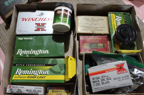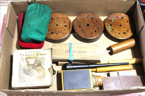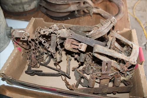 Collectibles & Curiosities:Guns: Marlin Model 48 12 Guage, Mossberg 12 Gauge, J C Higgins Model 1011 by Sears & Roebuck & Harrington & Richardson Drop Down Revolver Patent 1887; Outer & Hoppe's Cleaning Kits, Ammo: Partial Boxes - 12 Gauge: Remington & Winchester, 30/30, 308 Winchester, National Turkey Federation Shot Gun Shells & Shot Gun Shells; Full - Federal 12 Gauge & Remington 30/30, Assorted Shells & Bullets; Knives: Solargen & Fiskars Fixed Blades, Pocket - Buck, Kamp King, Colonial, Parker Cut Co, Imperial, Multi-Purpose Tools & NIB Tractor Collection Set; Griswold # 8 & 9 Skillets, 3 Burner Propane Cast Stove, Assorted Turkey Calls, Bay Shore Illuminated Pumpkin Blow Mold, 1986 US Liberty Coin Set & Foreign Paper Money, Hand Painted Saws, Hand Made Pine Cone Duck Display, Turkey Feather Mount, Hall Red Handled Cookie Jar, Royal Aluminum Camp Kit, Snow Shoes, Vintage Peppy Pup Remote Control Toy, Foldex 20 Camera/Case, Old Spice Shaving Cup, Vintage Strawberry Pitcher/Glasses, 1800's Horse Picture, American Family Scale, Marbles, Assorted Tea Cups/Sets, Early American Scenery Cloth Photo Album, Paper Weights, Allegheny W & CO. Fall Dish Set, Girl Scout Tin, Sad Irons, Italian Made Canister Set, Purple Pottery Bean Pot, Cobalt Blue Pieces, Singing Hank Williams Jr. Doll, #8 & 6 Crocks, Copper Bucket,25 Gallon Crock, Davis Welding & Mfg Co 5 Gal Milk Can, Early Metal & Wood Primitives, Griswold & Viking Double Burner Cast Stoves,Large Metal & Wood Wagon Wheels, Staved Whiskey Barrels,Many Victorian Style Figurines, Sleds, Slaw Cutters, Metal & Wood Pulleys, Staved Wood Buckets, Traps, Horseshoes, Sleigh Bells, "Country Belle Farmers Finest" Advertising Box, Glass Insulators, Draw Knife, Sioux City Birch Beer Bottles, Glass Door Knobs, 10 Inch Kettle, Horse Hames, Cast Water Pump & More.