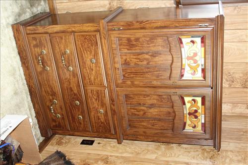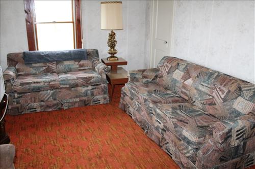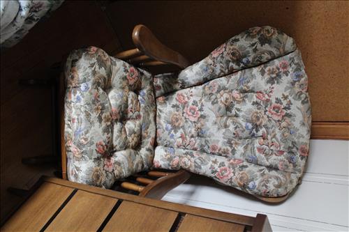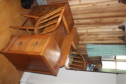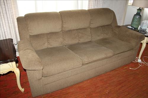 Furniture:Portable Kitchen Island, Compact Table w/ Chairs, Amish Rocker, Olive Green Sleeper Sofa, Brown Lazy Boy Recliner, French Provincial Side Stands, Floor Lamps, Pair of Pottery Lamps, 42" Samsung Flat Screen TV, Oak & Cast Plant Stands, Patterned Sofa & Love Seat, 3 Piece Bedroom Set: 5 Drawer Dresser w/ Mirror, Full Headboard & Armoire, 3 Piece Basset Bedroom Set: Full Headboard & (2) Dressers, 3 Piece Maple Bedroom Set: Full Headboard, Dressing Table w/ Mirror & Tall Dresser, Platform Rocker, Quilt Racks, 2 Drawer Wood Filing Cabinet & More.