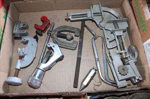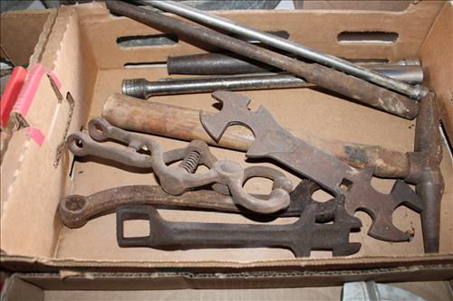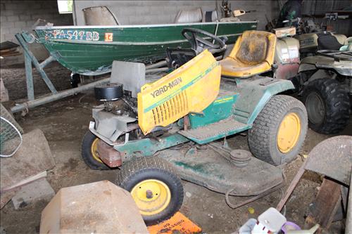 Farm Equipment & Tools:Ford 641 Workmaster Tractor w/3 Point Hitch in Working Order, Early Brush Hog, 2 Bottom Plow, Drag Disc,Pull Behind Tiller, Early Clinton Rototiller, Craftsman Lawn Sweeper, Yard Dump Cart, 4.5' by 6' Homemade Trailer w/Insulated Box - No Title, Fimco Sprayer on Wheels,Lawn Sweeper, 20' Extension Ladder, 6' Metal/Wood Ramps, Tire Chains, Stanchions, Tool Kraft Cooperation Scroll Saw, Farm Scale, Single Yokes, (2) 12.5 Gauge Barbed Wire Rolls, 6' Roll of Chicken Wire, 2 Wheel Dolly, Red Devil Seeder, Wheelbarrow, Tape Measurers, Taps & Dies, Screwdrivers, Mac Wrenches & Jointed Socket Set, Pipe & C-Clamps, Pipe Cutters, Pullers, Early Wrenches, Tin Snips, Hatchets, Hammers, Axes, All Trade Metric Combination Wrench Set, S - K Sockets, Socket Sets, Chicago Reciprocating Saw & 18 Volt Cordless Drill Set, Dremel w/ Accessories, Blue Ridge Chop Saw, B & D Router, Router Bit Sets, Clevises, Live Traps, Electrical Wire, Sprayers, Mac 3200 14" Chain Saw, Bottle Jacks, Metal Hardware Organizer Bin, Hardware Cleanouts, Scrap Batteries, Pony 28580 Bench Vise, Large Meadville PA Bench Vise, Sliding Door Rollers, Stackable Tool Box on Wheels, Oil Cans, Porter Cable Profile Sander, 2 Older Air Compressors, Craftsman 10" Table Saw, Lincoln Arc Welder, Lumber Board Roller, Ryobi Weed Eater, 4' Plow Blade, Primitive Saw w/3' Blade, Anvil, Die Hard Battery Charger, Thick Cable Wire, Early Seeder, Wood Hay Forks, 4 Riding Mowers for Parts or Scrap: Wheel Horse Toro 414-8, Wheel Horse Raider 12 - 6 Speed, Yardman 20 HP & Monte Carlo 8; & ETC...