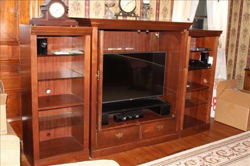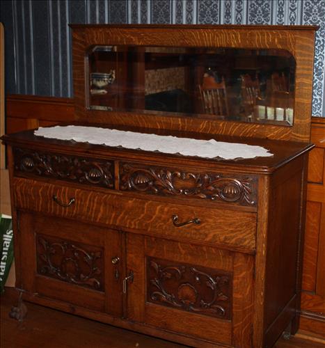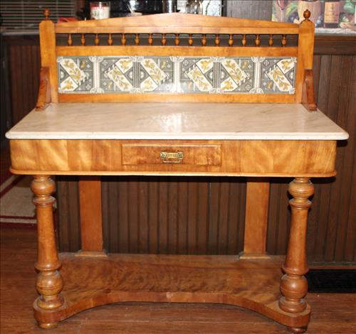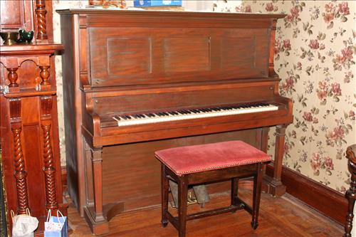 Furniture & Appliances: Beautiful Marble Top Tiger Maple Server w/Backdrop, Serpentine Front Curly Maple 3 over 4 Highboy Dresser & Side Stand, Early 1900's Curio, Quarter Sawn Oak Buffet w/ Mirror, Server, B & D Convection Oven, Bravos X Maytag Commercial Washer, Samsung Electric Dryer, Oak Chair, Metal Quilt Rack, Vintage 4 Drawer Dresser, Wood Extension Table, Jewelry Armoire, Zenith Window Air Conditioner, Wash Stand w/Harp, Child's Platform Rocker & Small Rocker; Hallet Davis & Co. Player Piano, La-Z-Boy Recliners, Parlor Tables w/Casters, LG Flat Screen TV, Couch & Chair w/Ottoman, 2 Tier Side Stand in Paint, Large Area Rugs, 3 Piece Entertainment Center, Vintage Drop Leaf Side Stand, Hand Carved Parlor Chairs, Iron Marble Top Plant Stand, Hall Tree, White Wicker Set: 2 Chairs, 2 Side Stands, Rocker, Love Seat & Coffee Table; Ice Cream Parlor Table w/ Chairs, Heart Back Ice Cream Parlor Chairs, Cast Chairs, Early Rocking Chair & Etc.