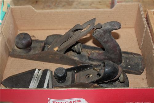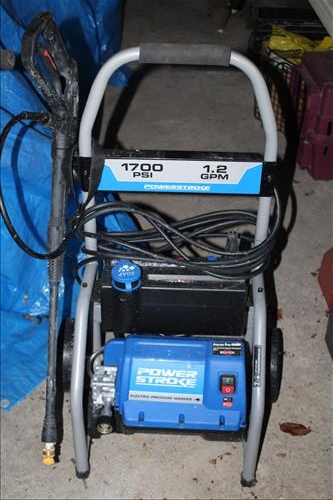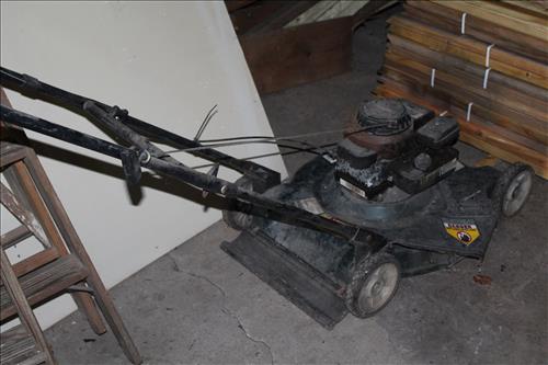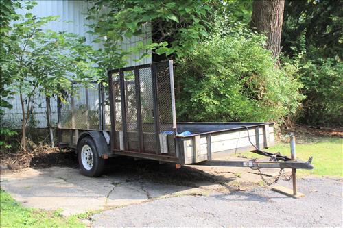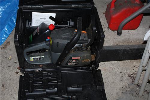 Tools & Trailer: 2002 Side and Rear Load Carry-On 6 X 14 Trailer, Craftsman Chainsaw & Laser Trac, Bolens Push Mower, B & D Cordless Drill & Jigsaw, Wen Reciprocating Saw, Skil Circular Saw, Bosch Hammerdrill, Spot Lights, Ryobi Drill Set, Solid State Battery Charger, Haul Master Cargo Net, Large Amount of Hand & Garden Tools, Square, Kidde Fire Extinguisher, Wheelbarrow, 1700 PSI Power Stroke Pressure Washer, Appliance Dollie, Small Dollie, Shop Seat on Wheels, Hitches, Early Planes, Wood A Frame Ladders, 40 Ft Aluminum Extension Ladder, Gas Cans, Sprayer, C - Clamps & More.