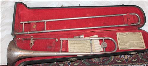 Musical Instruments: Violin w/case, Electric Mandolin, American Standard Trumbone, Acoustic Guitars, Harmony Electric Guitar, H. N. White American Standard Clarinet & More..