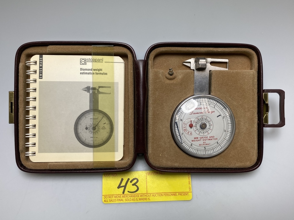 AND: DIGITAL CALIPERS, STOPPANI DIAMOND GAUGE AND WEIGHT ESTIMATOR HAS BROKEN HAND, STONE SIZERS, JEWELERS LOOPS50, GEM INSTRUMENTS CORP DIAMOND LIGHT MODEL 180, METTLER TOLEDO MODEL CB203/A PRECISION GEM SCALE, MAX 210CT 610CT 122G, DOES NOT INCLUDE POWER SUPPLY, METTLER TOLEDO MODEL CB203/A PRECISION GEM SCALE, MAX 210CT 610CT 122G, JEWELRY BOXES