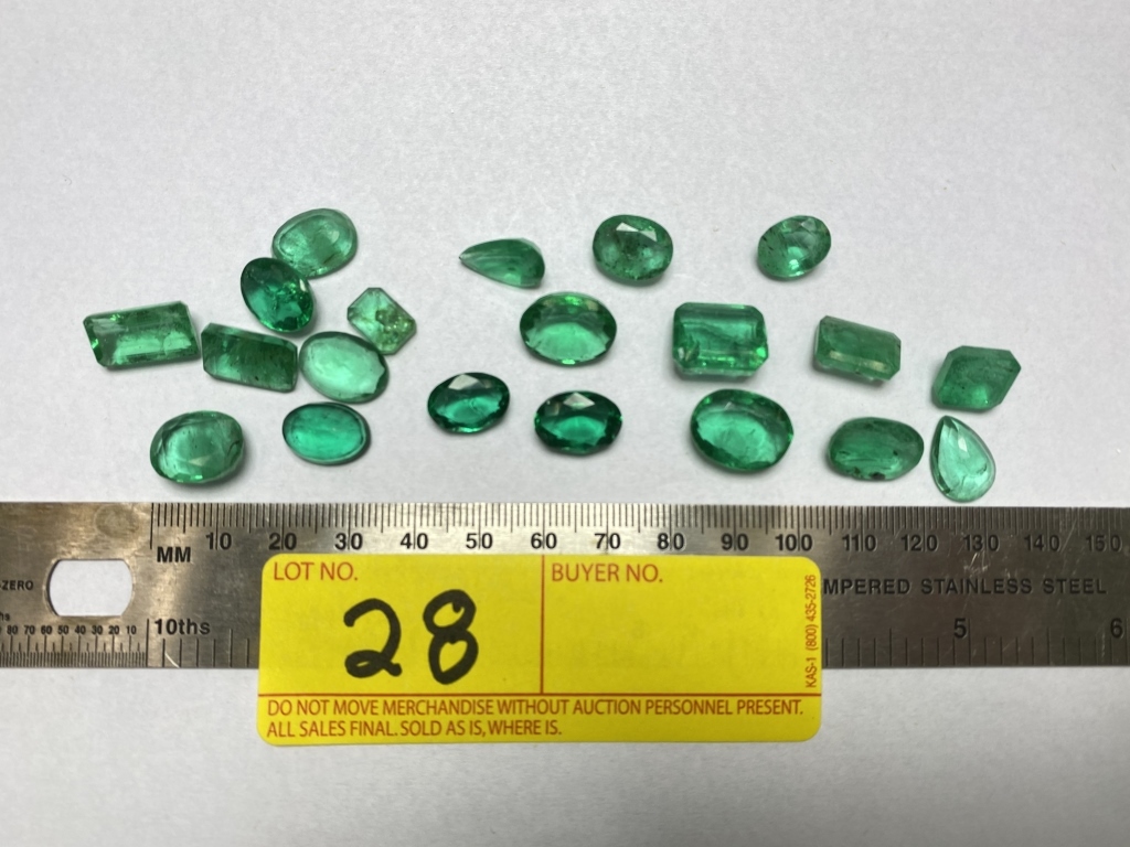LOT 28- LOT CONSISTING OF LAB CREATED EMERALDS ASSORTED SIZES: 115.5 CARATS TOTAL WEIGHT