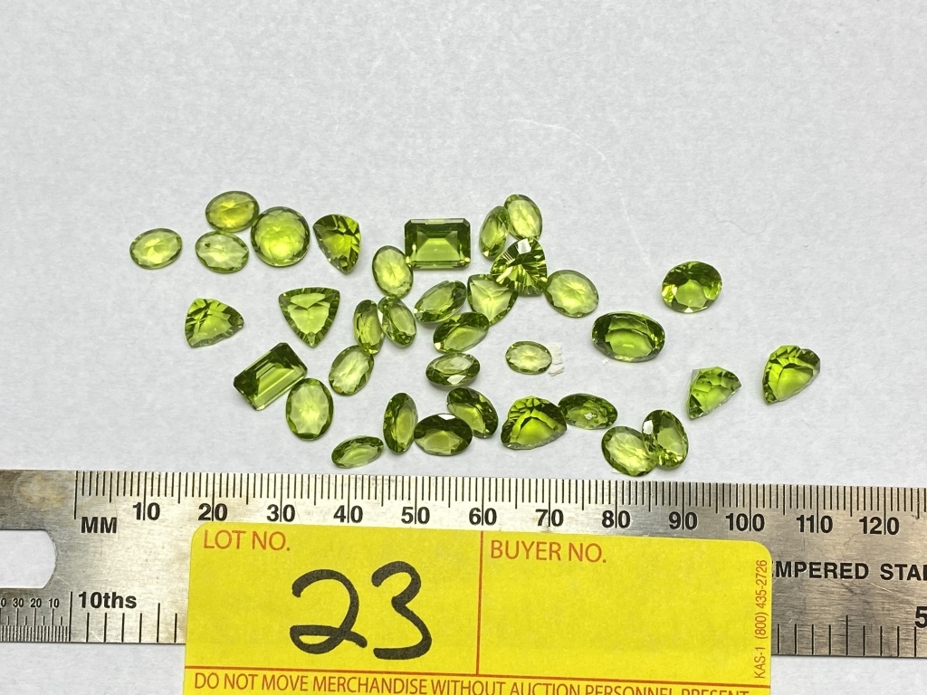 LOT 23- LOT CONSISTING OF LOOSE PERIDOT ASSORTED SIZES: 65.06 CARATS TOTAL WEIGHT