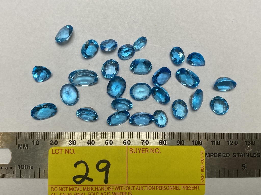LOT 29- LOT CONSISTING OF LOOSE BLUE TOPAZ ASSORTED SIZES: 139.94 CARATS TOTAL WEIGHT