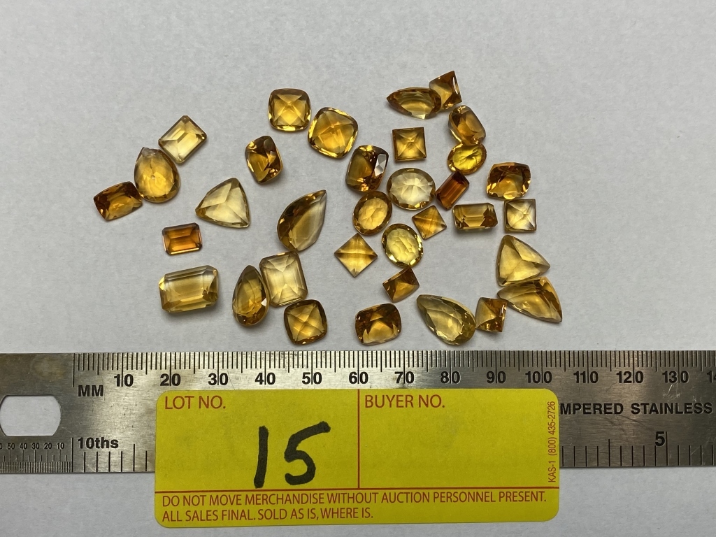 LOT 15- LOT CONSISTING OF LOOSE CITRINE ASSORTED SIZES: 102.4 CARATS TOTAL WEIGHT