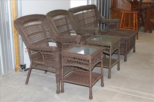 Furniture: Barrister Bookcase, Oak Hoosier Cabinet, Brown Wicker: Love Seat, 2 Chairs, Coffee Table & 2 Side Stands; 4 Shelf Pine Book Stand, Wood Ironing Board/Stool, Pine Country Storage Bench, Roll Top Desk, Drop Leaf Side Stands, 2 Drawer Hall Table, Willow Creek Hand Made Step Stool, Small Children Benches, Unusual Foot Stools, School House Desks, 1950's Chrome Table w/Leaf, Small 2 Door Cabinet, Cherry Wardrobe, Single Drawer Side Stand, Pleather Recliner, Wood Arm Chair, 2 Office Chairs, Oak Rocker & Chair, Cane Bottom High Chair, Early Oak Cupboard, Oak Desk, Record Cabinet, Wash Stand w/Harp, 10.5' Oak on Pine Store Counter, Jenny Lind Bed, La-Z-Boy Recliner, Industrial Style Office Chair, 4 Ice Cream Parlor Chairs, Black Bar Stools, Hall Cabinet, Hand Painted Table & Dresser w/Mirror & More....
