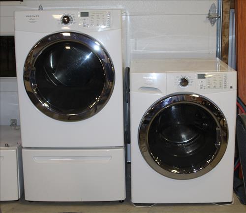 Household & Misc: Frigidaire Affinity Front Loading Washer & Dryer on Stands, Fishing Net & Box, Fishing Poles & Reels, Camo Tree Stand, Small Cement Deer & "Fat Cat", Deer Motif Cookie Jar, Wood Wheel Barrow Yard Planter, Lg Amt of Beautiful Wood Wall Signs & Hook Racks, Yard Frogs, Victoria Station Clock, Americana Wood Wares, Stained Glass Window Hanger, Candy Jar, Tiffany Style Small Lamp, Portable Radios, Nesco 18 Qt. Roaster, Pot's & Pans, Blankets, Con-Air Fabric Steamer, Pet Carrier, Sanyo Flat Screen TV, Home Decor, Paula Dean Enamel Bowls, Toshiba Laptop, Shepherd Hooks, Large Wall Mirrors & A LOT More...