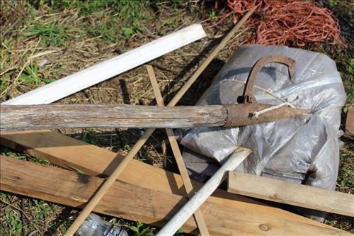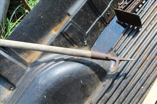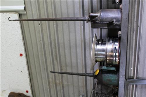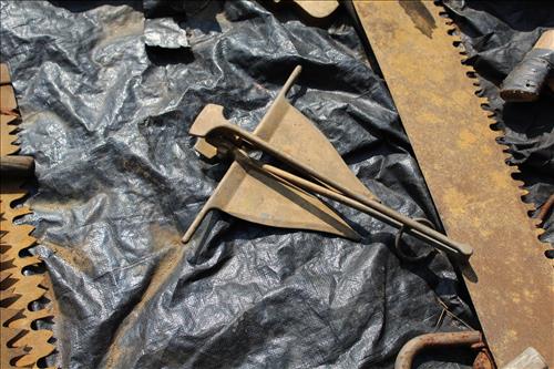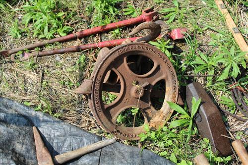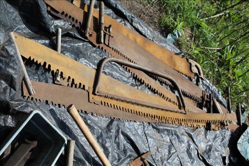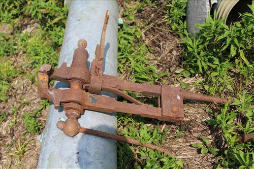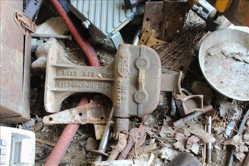 Primitives, Antiques & Collectibles: Queen Cutlery Knife Collection, Queen Serving Fork, Grain Sieve, Crocks, Cast Kettle, Broad Ax, Mill Pick, 1 Leg Vise, Wood Augers, Hog Scrappers, Ox Yoke, 2 Man Saws, Cross Cut Saws (pre 1875), Child's Cross Cut Saw, Zippo Lighters, 1914 Cut-Off Saw, Hand-Made Square, Repro Sears Catalog, John Deere Sign, Pike Pole, Torches, Hay Knife, Bark Spud Bars, Pulleys, Buggy Wrenches, Buggy Axle Greaser, Buggy Whip, Advertising Oil Cans/Barrels: Mobil, Kendall, Cen-Pe-Co Lubricants & Pennzoil w/Pump; Forge, Vise - Greenville, PA, Pot Belly Stove, Sausage Press, Steel Wheels, Cant Hooks, Redwood Bar Spud, Early Primitive Vises, Steel Wheel Wheelbarrow, Collectible Hand Painted Barnes Auction Sign, Stanchion, Early Power Hack Saw - 1914, Large Grinding Stone, Grinding Stone on Stand, Hitching Post Top, Stage Coach Steps, Triangle Dinner Bell, Bee Smoker, Hay Hooks, Draw Knives, Monkey Wrenches, Coleman Lanterns, Sythe, Sickles, Coca-Cola Items, Holster Collection, Drake Well Belt Buckle 82/200, 33 1/3 LP Records, Early Gold Mining Pan & Many unlisted Primitives.... & More...