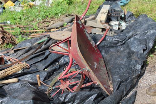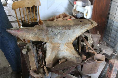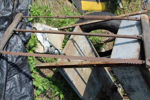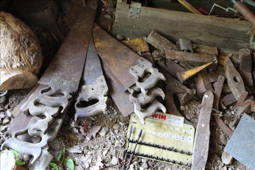 Primitives, Antiques & Collectibles: Queen Cutlery Knife Collection, Queen Serving Fork, Grain Sieve, Crocks, Cast Kettle, Broad Ax, Mill Pick, 1 Leg Vise, Wood Augers, Hog Scrappers, Ox Yoke, 2 Man Saws, Cross Cut Saws (pre 1875), Child's Cross Cut Saw, Zippo Lighters, 1914 Cut-Off Saw, Hand-Made Square, Repro Sears Catalog, John Deere Sign, Pike Pole, Torches, Hay Knife, Bark Spud Bars, Pulleys, Buggy Wrenches, Buggy Axle Greaser, Buggy Whip, Advertising Oil Cans/Barrels: Mobil, Kendall, Cen-Pe-Co Lubricants & Pennzoil w/Pump; Forge, Vise - Greenville, PA, Pot Belly Stove, Sausage Press, Steel Wheels, Cant Hooks, Redwood Bar Spud, Early Primitive Vises, Steel Wheel Wheelbarrow, Collectible Hand Painted Barnes Auction Sign, Stanchion, Early Power Hack Saw - 1914, Large Grinding Stone, Grinding Stone on Stand, Hitching Post Top, Stage Coach Steps, Triangle Dinner Bell, Bee Smoker, Hay Hooks, Draw Knives, Monkey Wrenches, Coleman Lanterns, Sythe, Sickles, Coca-Cola Items, Holste...