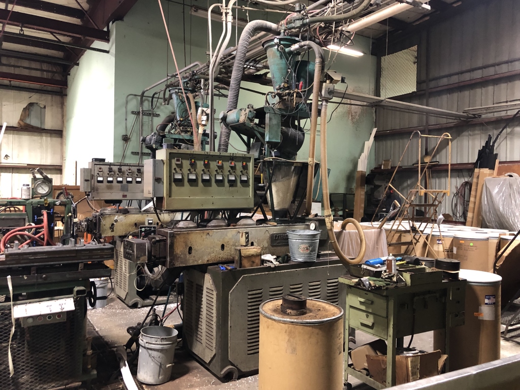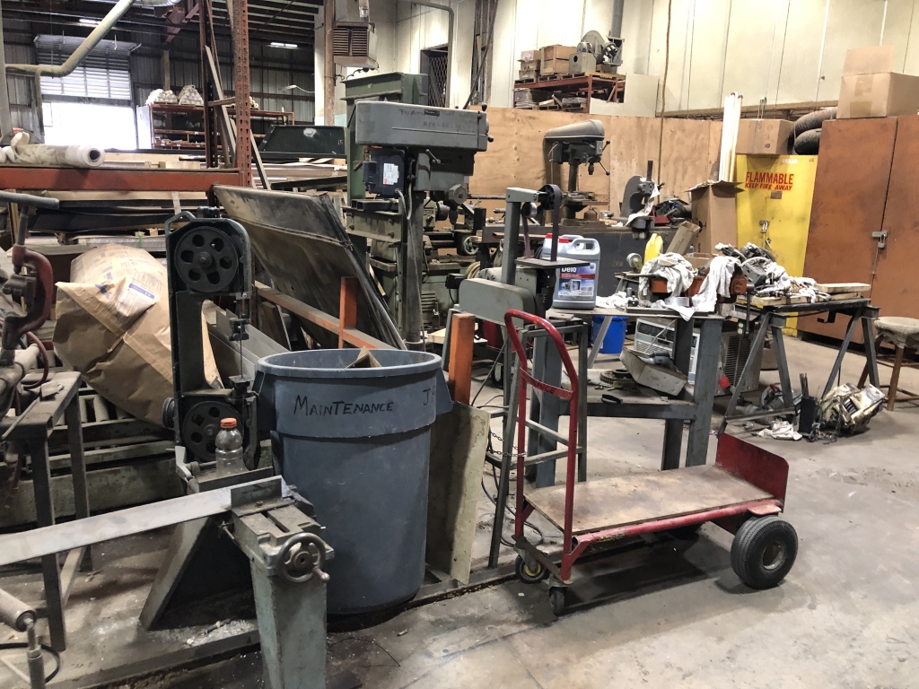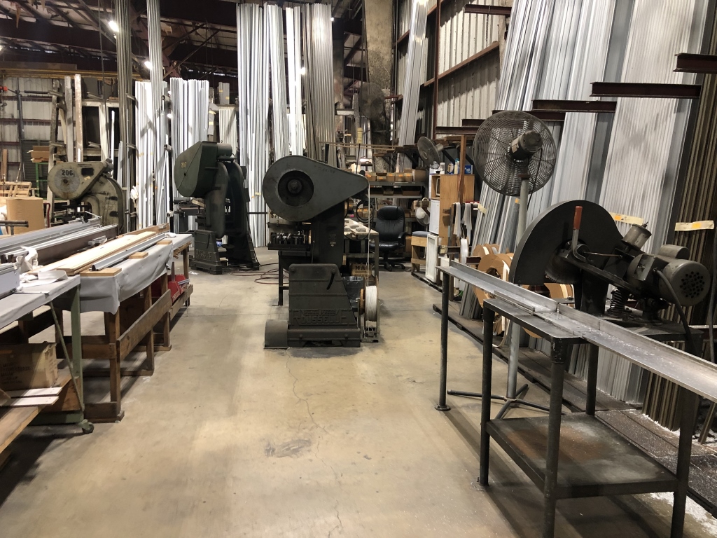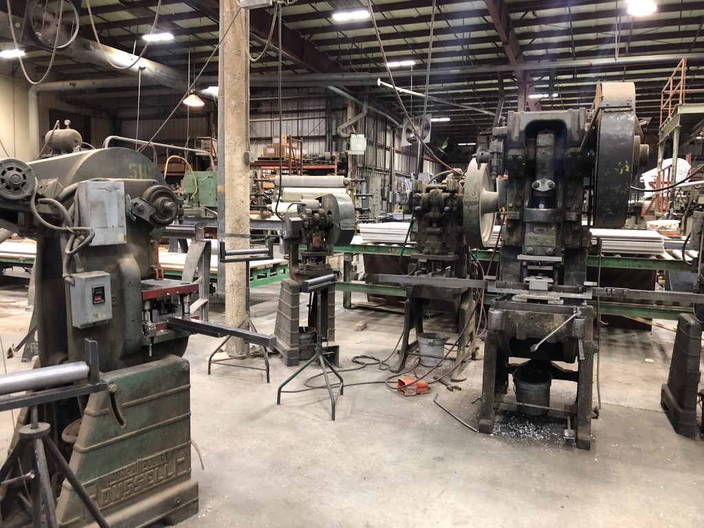 - 140,000 sqft. facility comprised of a vast amount of Manufacturing Machinery and Equipment including but not limited to: assorted hydraulic punch presses, die presses and dies, hydraulic press breaks, hydraulic sheers, welding machinery, lamination machinery line, glue application machinery, plywood and MDF boards, heat press machinery, assorted milling machines and drill presses, band saws, Clark forklifts, Toyota forklifts, pacemaker plastic extrusion lines, bench lathes, warehouse handling equipment, scissor lift, racking, shelving, raw materials, supplies, office furniture, computers/office equipment, 2012 Chevrolet Express van, intellectual property (trademarks, copyrights, patents, design rights, logos, licensing agreements, domain name, websites, testing reports, promotional aids) and much more.