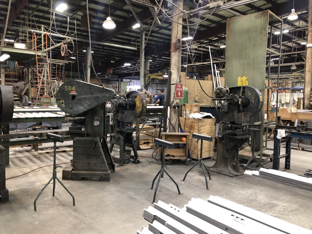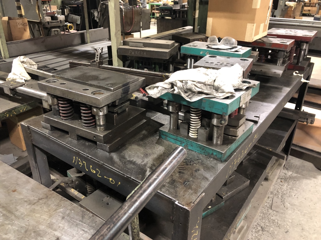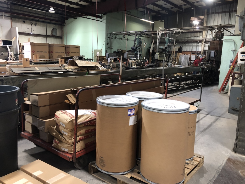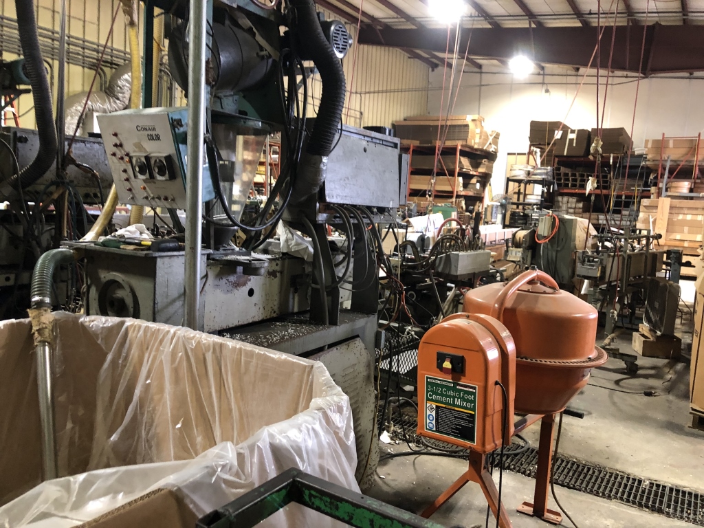 - 140,000 sqft. facility comprised of a vast amount of Manufacturing Machinery and Equipment including but not limited to: assorted hydraulic punch presses, die presses and dies, hydraulic press breaks, hydraulic sheers, welding machinery, lamination machinery line, glue application machinery, plywood and MDF boards, heat press machinery, assorted milling machines and drill presses, band saws, Clark forklifts, Toyota forklifts, pacemaker plastic extrusion lines, bench lathes, warehouse handling equipment, scissor lift, racking, shelving, raw materials, supplies, office furniture, computers/office equipment, 2012 Chevrolet Express van, intellectual property (trademarks, copyrights, patents, design rights, logos, licensing agreements, domain name, websites, testing reports, promotional aids) and much more.
