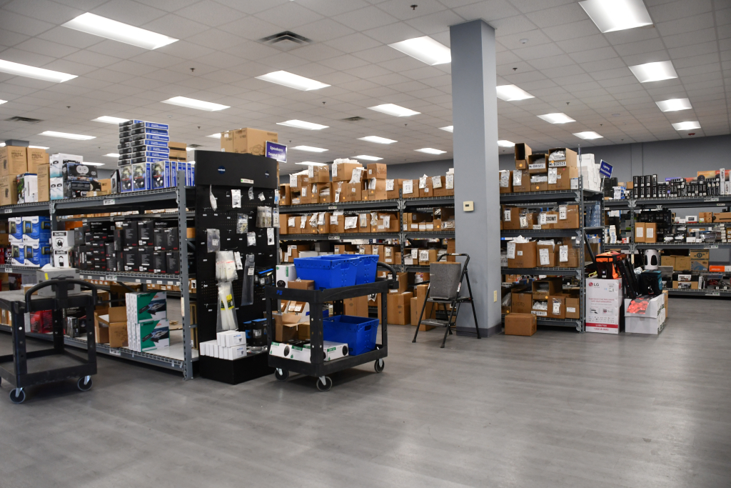 Sale will consist of huge inventory of NEW electronics and consumer goods (and returned goods), large quantity of pallet racking sections, forklifts, warehouse equipment, pallet jacks, shelving units, packing/shipping materials and accessories, large quantity of shipping boxes, rolling carts, worktables, ladders, office furniture, office equipment, computers, printers, computer peripherals, merchandise and more.