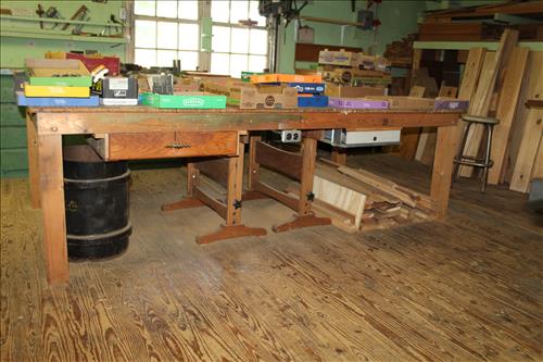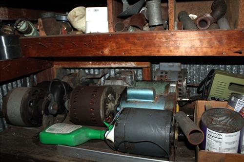 Wood Workshop Accessories & Miscellaneous Items:Vintage Small Pull Behind Rotary Tiller w/3 Pt Hitch, Bearings, 3' x 7' and 4' x 8' Work Benches,Wood:Lumber Boards - Oak, Pine & Cherry; Dowel Rods, Wood Clean-Outs - Smaller Boards; Wood Boxes on Wheels, Stools, Step Stools & Conversion Stool; Wood Rollers on Stands, Wood Saw Horses, Wood Ladders, Large 80 Drawer Wood Hardware Organizer, 30 Drawer Wood Organizer w/Small Wood Working Tools/Bits, 4 Metal/Plastic Organizers w/Hardware, Large Amount of Misc. Hardware, Workshop Saw Clock, Dymo Label Maker w/Tape, Pocket Knives, Work Lights, Metal Chest on Wheels, 2 Tier Wood Bench, Wood Cabinet, Metal Stand & Cart, Metal Equipto Organizer w/Small Shelves & Drawers, Tractor Hitches, 8+ Electric Motors, Montgomery Ward Lawn Sweeper & 3 Metal Industrial Grade 7- Drawer Filing Cabinets.