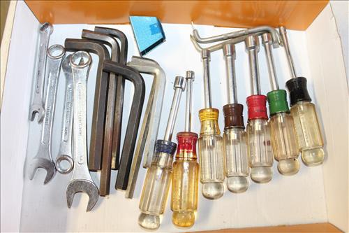 Other Hand & Misc Tools:Yale 1/2 Ton Hoist, Craftsman Chisel Sets, Plane & Drill Bits;Complete Sets of Router Bits, New & Used Table Saw Blades, Dado Saws, Staple Guns, Hex Socket Wrenches, Hole Saws,Clamps:Quick Grip, Pipe, Wood, Corner, "C", & Table Top; Hammers, Rubber Mallets, Ball Peen Hammers, Punches, 10 PcT-Handle Hex Key Set, Screwdrivers, Machine & Bench Vises, Vise Grips, Files, Tapered Drill Countersink/Bore & Stop Collar Set, Drills, Keys & Bits; Industrial Drill Bits, Auger Drill Bits, Pullers, Allan Wrenches, Socket Sets, Craftsman Drill Press Milling Attachment, Reamers, Drill Braces, Flush Cutter, Nut Drivers, Wrenches, Midget Combination Standard Wrench Set, Grease Guns, Wedges, Tap & Die Set, Crowfoot Wrenches, Gauges, Cutting Wheels, Pipe Wrenches, Tin Snips, Wheelbarrow, Jumper Cables, Chains w/Double Hooks, Chain Binder, Come-A-Long, Sledge Hammer, Axe, Other Yard Tools & Etc...