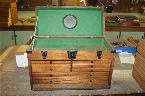 Machinist Tools:Lufkin, Starrett & Craftsman: Micrometers, Calipers, Angle Rules, Dial Gauges, Squares, Knurling Tool Holders, Digital Calipers, Mechanical Edge Finders, Magnetic Base Indicator Holders w/Jointed Arms, Parallels, Cutting Tools, Inch Depth Micrometer Set, 7-Drawer Oak Machinist Boxes, Tool Boxes & Blank/Slug/Billet Metal Stock.