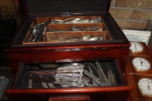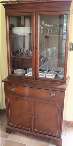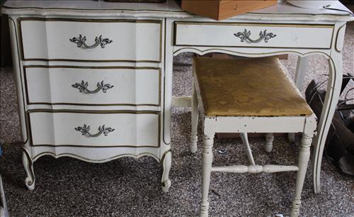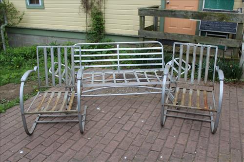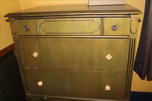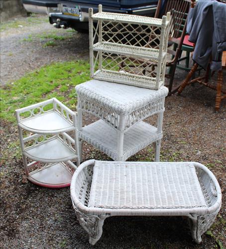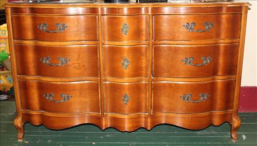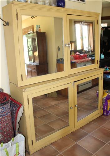 Vintage Furniture: Drop Front Secretary, Wicker Side Stand, Shelf & Bed Tray; Large Mirrored Step Back Cupboard, Pedestal Oak Table w/6 Pressed Back Chairs, Brickwede Mahogany China Cupboard, Oak Rockers & Chairs, 9 Drawer Serpentine Front Dresser, Vanity, Large Oak Framed mirror, 3 & 4 Drawer Dressers in Paint, Cedar Chest, Upholstered Rocking Chair, Bedroom Suite: Twin Bed, Dresser & Vanity; Enamel Top Cabinet, Oak Hall Tree, Oak Table, Wood Card Tables, Buffet w/Back Splash Mirror, Harp Back Storage Chair, Hall Bench w/Back, Book Cases, Plant Stands, Rot Iron Bottom Glass Top Side Stands, Cedar Lined Armoire w/Drawers, Amish Rocker, Outdoor Metal Lawn Chairs & Glider, Variety of Chairs & Rockers & More.