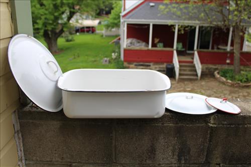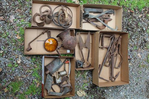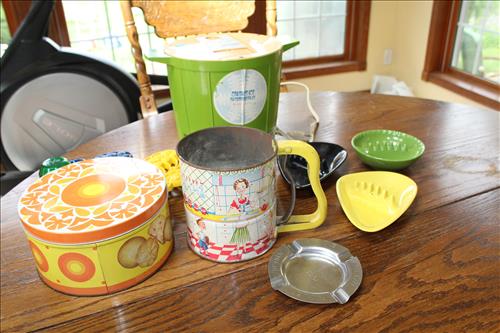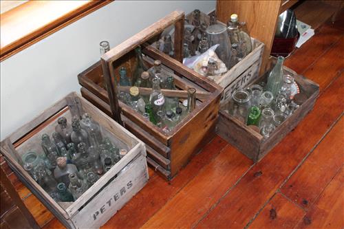 Antiques & Collectibles: Dinner Bell w/Eagle, Standard Computing Scale Co. Scale, Brass Bells, Rex-Ray Steel Fan, Golden Rod Oiler, The Howland Oiler - 1905, Sunoco Motor Oil Can, American Explosives Co Boxes, Pepsi & Coca-Cola Crates, Williamsburg Va Pottery, Buttons, Thread Spools, Dresser Set on Mirror, 1895 England Ironstone Pitcher & Bowl, Tricycles: Radio Flyer, Mercury & Western Flyer; Wood Army Locker w Army Clothes, Handled Bean Pots, Crocks: #2 w/Lid & Stomper, Bee Hive, #3 Star, #6, Small w/Lids, Small Bee Hives, Banded, Brown on White, Antique Stoneware Canning Crock, #10 & Many Crocks of Varying Sizes; 1.5 Batter Jug Crock, Marbles, Enamelware: Large Coffee Kettle, Vollpath Bed Pan, Trays, Tubs, Lids, Bakeware, Tea Pot Stock Pots & Pitchers; Cobalt Blue & Amber Bottles, Egg Basket, Candle Molds, Wagner Cast Iron Cornbread Pan, Scale Hook, Leather Shop Tools, Braces, Yankee Screw Drivers, Dual Wood Pulley, Cast Trivets, Ice Shaver, 1893 Chopper, Car Horn & Reflector, Ice Tongs, Steiff Ram, 1867 Keuffel & Esser Co. Drafting Hand Level Tool, Photo Album w/Lithographs, Small Lightning Rod, Spice Tins, Quilts, E. Ingraham Co Clock, Primitive Wood Boxes, Duck Head Walking Stick, Marble Inlaid Plate, Single Trees, Lead Crystal Decanters, Marble Clock Face Parts, Sythe, Roseville Candle Holder, Hay Knives & Hook, Flatware, Books, Wheat Pennies, Skeleton Keys, Anaconda Miners Box, Peters High Velocity 16 Ga Shell Box, Nail Barrells, Zippo Lighter, 1952 Androck Sifter, Aluminum Ice Bucket, Barware, 1950's Pitcher & Glasses, Art Glass Bowls & Vases, Lamps, French Provincial Phone, Milk Can, Space Saver Drying Rack, Kite Reel, 1946 Berlin Germany Coin Cup, 20' Oriental Rug Runner, Wood/Metal Baby Walker, Advertising Powder Horns, Singer Sewing Machine (AE880779) & More.