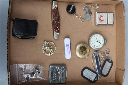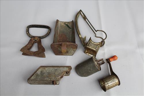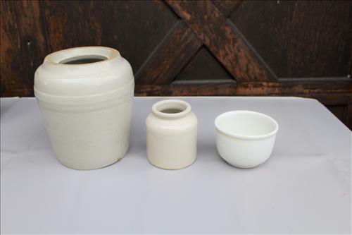 Antiques & Collectibles: Dinner Bell w/Eagle, Standard Computing Scale Co. Scale, Brass Bells, Rex-Ray Steel Fan, Golden Rod Oiler, The Howland Oiler - 1905, Sunoco Motor Oil Can, American Explosives Co Boxes, Pepsi & Coca-Cola Crates, Williamsburg Va Pottery, Buttons, Thread Spools, Dresser Set on Mirror, 1895 England Ironstone Pitcher & Bowl, Tricycles: Radio Flyer, Mercury & Western Flyer; Wood Army Locker w Army Clothes, Handled Bean Pots, Crocks: #2 w/Lid & Stomper, Bee Hive, #3 Star, #6, Small w/Lids, Small Bee Hives, Banded, Brown on White, Antique Stoneware Canning Crock, #10 & Many Crocks of Varying Sizes; 1.5 Batter Jug Crock, Marbles, Enamelware: Large Coffee Kettle, Vollpath Bed Pan, Trays, Tubs, Lids, Bakeware, Tea Pot Stock Pots & Pitchers; Cobalt Blue & Amber Bottles, Egg Basket, Candle Molds, Wagner Cast Iron Cornbread Pan, Scale Hook, Leather Shop Tools, Braces, Yankee Screw Drivers, Dual Wood Pulley, Cast Trivets, Ice Shaver, 1893 Chopper, Car Horn & Reflector, Ice Tongs, Steiff Ram, 1867 Keuffel & Esser Co. Drafting Hand Level Tool, Photo Album w/Lithographs, Small Lightning Rod, Spice Tins, Quilts, E. Ingraham Co Clock, Primitive Wood Boxes, Duck Head Walking Stick, Marble Inlaid P...