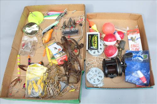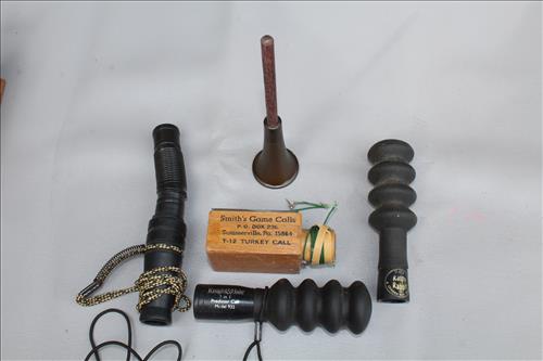 Hunting & Fishing: Hunting Jackets & Clothes, Vintage Calls: Grunt Wheezer, Privos, Raspy Rabbit, Knight & Hale Predator & Turkey Calls: H.S. Strut, Penns Woods Wizard & Smith Game Calls; 2 Moultrie Trail Cams, Deer Cam Scouting Camera, Nikon Lser 600 Buckmaster Range Finder, Hoppe's Gun Cleaning Kits, Ammo: Remington 308 Win, 270 Win, 300 Sav, 30-30 Winchester, 12 Gauge & 20 Gauge Shells; Golden Eagle Super Hawk Compound Bow, Short Stop Compound Bow, Fishing Items; Reels, Poles, Lures, Bobbers, Jigs, Line, Net & More; Sleeping Bags, Turkey Decoys, Camo: Bow Holder, Cushion, Cooler & Gun Sling; Animal Mounts: Beaver, Fox, Pheasants, Red & Gray Squirrels & Weasel; Walleye Fish Mount, Fox & Coyote Fur Hides, Turkey Tail Feathers, Lowrance Fish Finding Sonar GPS, Humminbird Fish Finder, Shell Re-loader Press, Bushnell & Nikon Binoculars & Etc.