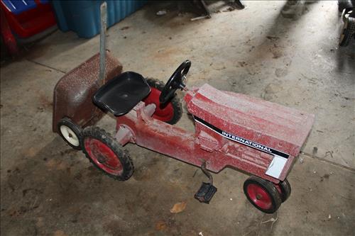 Items of Interest: Honda Express Model 1978 Motorized Scooter, Child's International Harvest Pedal Tractor, 20+ Boxes of Canning Jars of Various Sizes and Glass/Lead Top Lids, Harley Davidson T-Shirts, Hockey & Paintball Equipment, Farm Market Produce Crates, Pictures & Prints: Ducks Unlimited - Common Loons, Strutten Grounds by Eddie LeRory, 3 Rivers Stadium Implosion, Pittsburgh Skyline & More; Foosball Table, Powerhouse Weight Bench, Wine Making Accessories, Horseshoe: Boot Scrapper, Towel Rack & Toilet Paper Holder; Small Tonka Bike & Hand Painted "Kitty" Shovels.