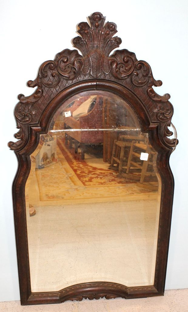 Heavily carved oak mirror beveled glass; 23 1/2" w., 44" h.