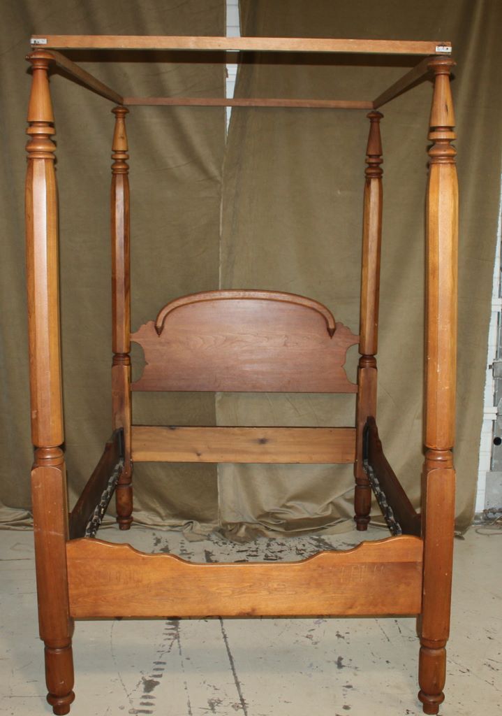 1800's Three-Quarter Teaster Bed, Natural finish Mahogany wood. 92"h x 55"w.