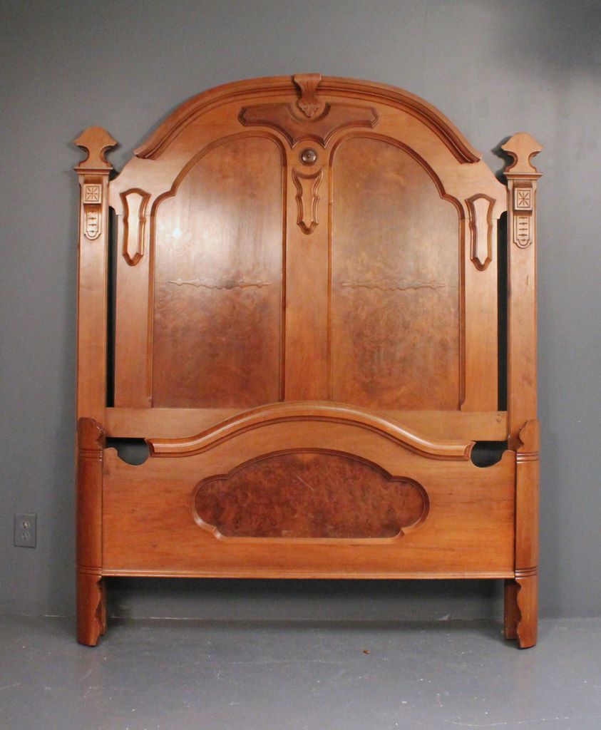 19th Century Walnut Victorian Bed; high back bed (missing crest) burl walnut panels in headboard, applied moldings; 60" w., 70" l., 76" h.