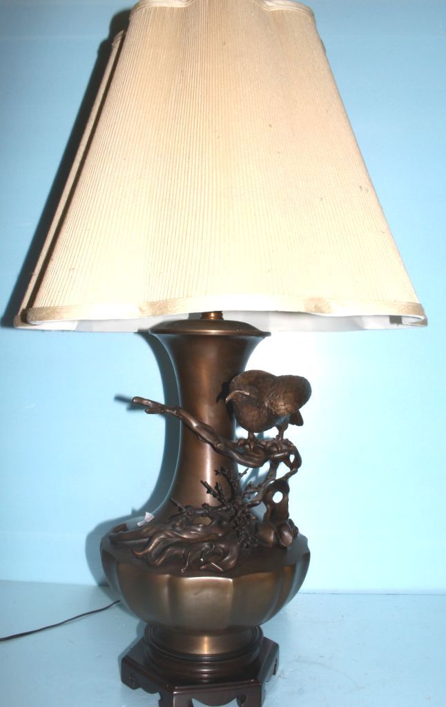 Fine Meiji Period Japanese Bronze Lamp with Ornate Tree and Bird Design