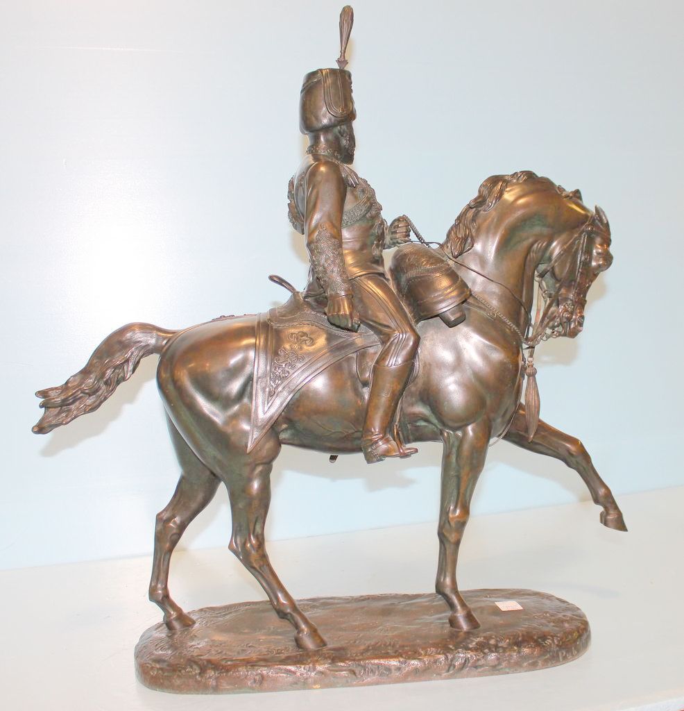 Large bronze sculpture of Edward VII on horseback by Remington Clarke (English 1880-1920). Clarke was active in the late nineteenth to twentieth century. An equestrian portrait of King Edward VII as Prince of Wales bronze with dark patina. Inscribed "Pub by W. Cooper, 108 New Bond Street" ; 29 1/2" h., 23" w.