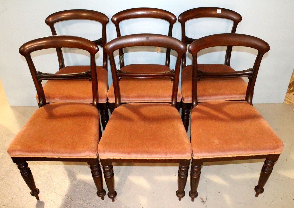 Set of Six Mahogany Victorian Dining Chairs; 17" w., 15" d., 33" h.