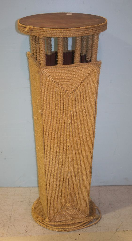 Unusual Wooden Pedestal Wrapped in Rope, commissioned to feature sculptural artifacts from Africa; 43" h., 16 1/2" dia.