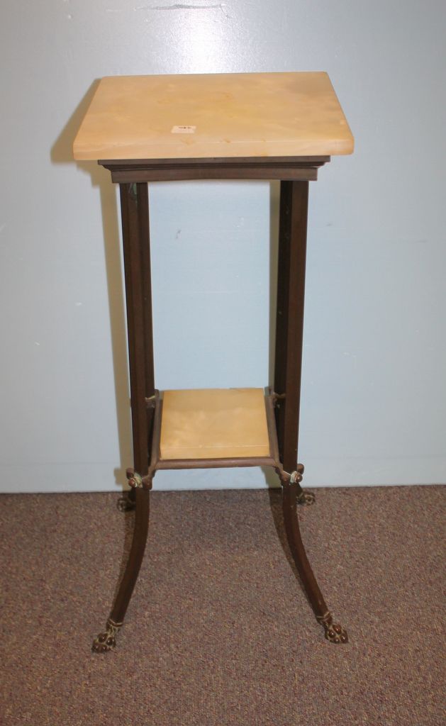 Early 20th Century Alabaster and Brass Fern Stand, two tier; 12" square, 30" h.