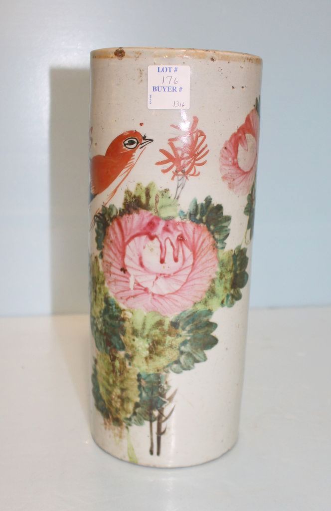 Circa. 1900 Porcelain Hand Painted Chinese Wig Stand; 4 1/2" dia., 11" h.