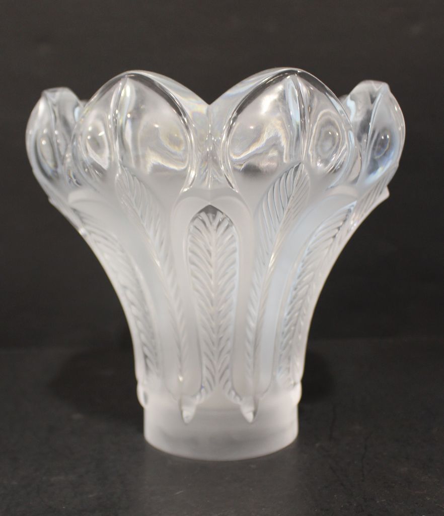 Large lalique crystal lotus leaf vase, etched on bottom Lalique France; 9" h.